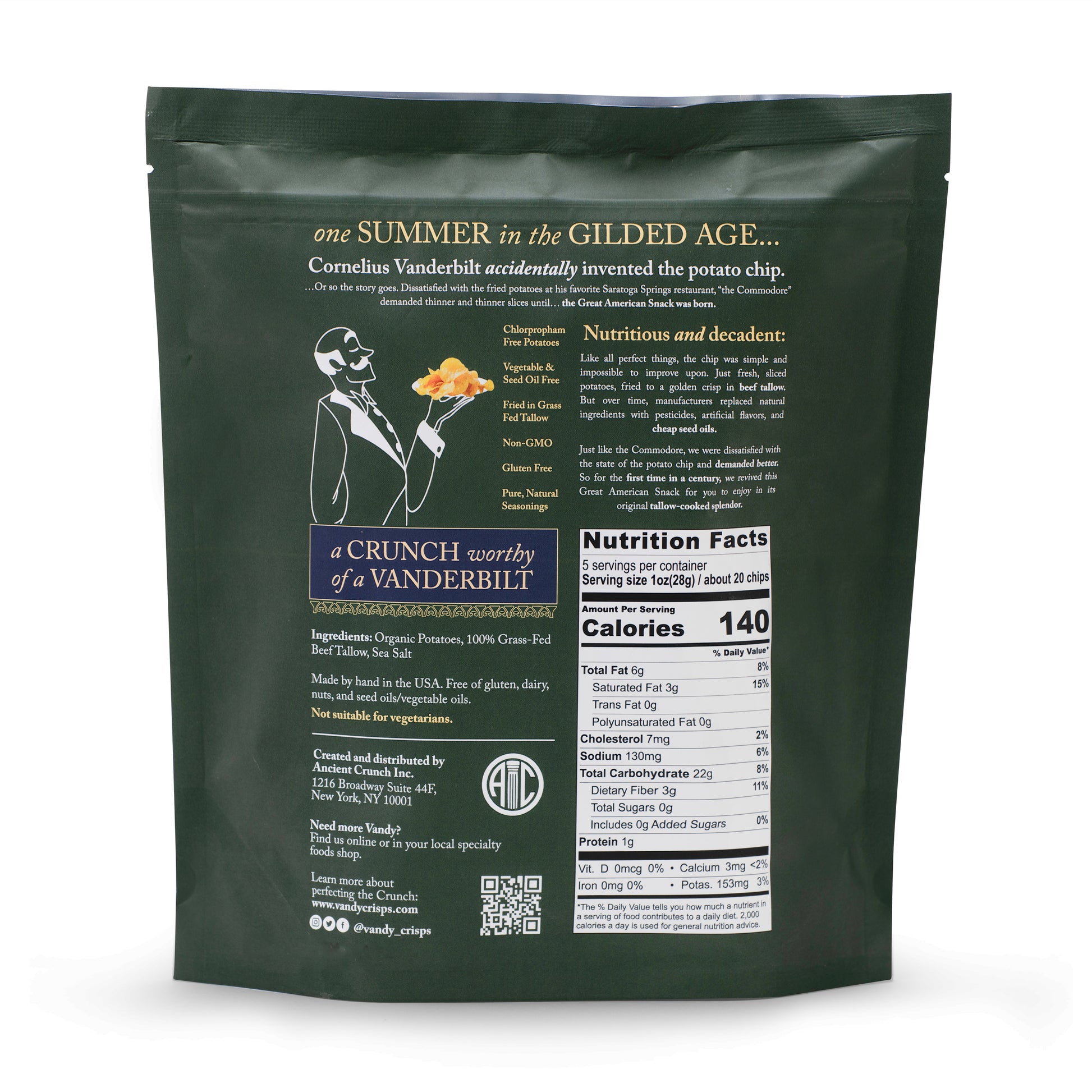 Vandy Crisps are a return to the way potato chips were meant to taste. Each 5 oz bag is made with just three simple ingredients organically grown potatoes are sliced and fried in grass fed beef tallow, then finished with sea salt for a perfectly balanced crunch.