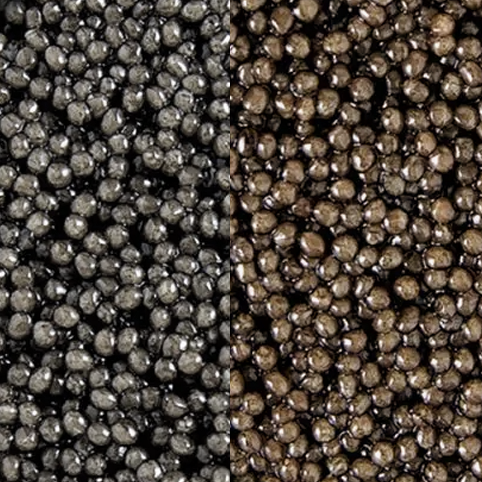 Platinum White Sturgeon Caviar from White Sturgeon; 24 Karat Kaluga Caviar from Kaluga Sturgeon